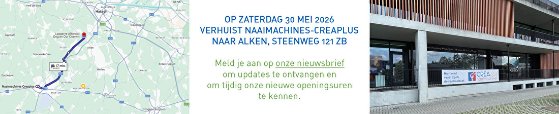 Account aanmaken OP ZATERDAG 30 MEI 2026 VERHUIST NAAIMACHINES-CREAPLUS